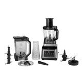 غذاساز نینجا مدل BN800 یک محصول خوش ساخت و مدرن از برند نینجا میباشد که خریداری آن، شما را از هرگونه محصول مشابه دیگر بی نیاز میسازد. به لطف موتور 1200 واتی با بیشترین سرعت چرخش 21000 دور در دقیقه این محصول، شما میتوانید انواع مواد غذایی را در کمترین زمان ممکن تهیه کنید و لذت ببرید. این دستگاه غذاساز نینجا مدل BN800 علاوه بر غذاساز، یک اسموتی ساز و مخلوط کن نیز هست و در عین پیشرفته بودن، کار کردن با آن بسیار آسان است. لازم به ذکر است که شما با داشتن آن میتوانید با بهره گیری از برنامه های مختلف آن از جمله تهیه اسموتی، پوره کردن، خرد کردن، به هم زدن، مخلوط کردن میوه ها یا مغزها، لذیذ ترین غذاها و نوشیدنی ها را تهیه کنید. بدنه این محصول از جنس پلاستیک بوده و ظاهری شیک با ترکیب رنگ خاکستری و مشکی دارد که جذابیت محصول را نه چندان افزایش داده است. به لطف کاسه 1.8 لیتری این غذاساز، امکان تهیه انواع مواد غذایی در حجم بالا برای شما فراهم میشود. این غذاساز نینجا مدل BN800 ابعاد جمع و جوری دارد که حمل را برای شما آسان میکند، همچنین فضای زیادی را درآشپز خانه اشغال نمیکند. پارچ غذاساز در برابر ضربه مواد غذایی سفت از جمله یخ مقاوم است، چرا که جنس آن از پلاستیک ضد ضربه میباشد. همچنین ظرفیت این پارچ 2.1 لیتر میباشد و برای تهیه انواع سس ها، نوشیدنی و اسموتی ها مناسب میباشد. برای این غذاساز از برند نینجا تیغه 6 پره و تیغه 4 پره در نظر گرفته شده است که با توجه به نیازتان میتوانید آنها را به کار ببرید. ضمناً این تیغه ها از استیل ضد زنگ ساخته شده اند و در برابر ضربه و خوردگی مقاوم هستند. دیسک های طراحی شده برای این غذاساز به منظور ریز کردن و تهیه برش های ورقه ای نازک استفاده میشوند. جنس این دیسک ها، همانند تیغه ها از استیل تهیه شده تا عمر و بازدهی بالایی داشته باشند. فناوری Auto_IQ در این محصول به کار گرفته شده است. نحوه عملکرد این فناوری بدین صورت میباشد که غذاساز با استفاده از پنج دستور کار هوشمند توانایی متوقف کردن اتوماتیک را پس از اتمام فرایند دارد. تنظیمات 3 سرعته و عملکرد پالس از قابلیت های خوب این محصول به شمار میروند. لازم به ذکراست بخش هایی از دستگاه که در تماس با مواد غذایی هستند فاقد BPA بوده و قطعات قابلیت شستشو در ماشین ظرفشویی را دارند.