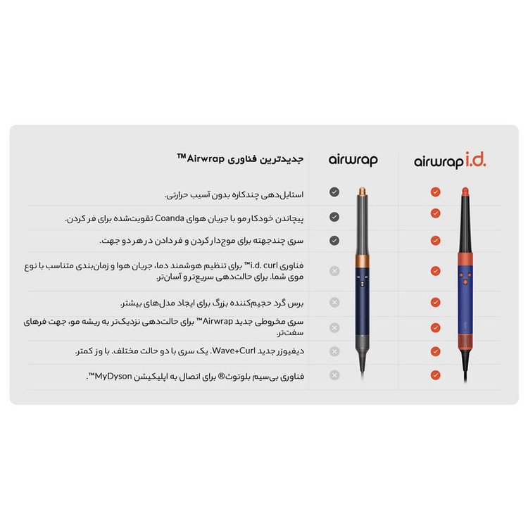 Dyson Airwrap i.d.™ HS08 تجربهای متفاوت از حالتدهی مو را برای شما به ارمغان میآورد. این دستگاه انقلابی با فناوری هوشمند خود، بهطور خودکار با اتصال به برنامه My Dyson بر روی موبایل شما نوع مو، جهت چرخش، دما و زمان مناسب را شناسایی میکند و بدون نیاز به مهارت حرفهای، حالت دلخواه را به موهای شما میدهد. دیگر نیازی به حرارت شدید و آسیب به موها نیست؛ تکنولوژی Coandă موها را با جریان هوای کنترلشده به شکلی طبیعی و ماندگار شکل میدهد. اتصال بلوتوث و اپلیکیشن MyDyson™ امکان ایجاد پروفایل شخصی و دسترسی به آموزشهای اختصاصی را فراهم میکند تا همیشه بهترین نتیجه را بگیرید. با سریهای متنوع، برسهای حرفهای و طراحی سبک و ارگونومیک، هر آنچه برای زیبایی موها نیاز دارید در دستان شماست. Dyson Airwrap i.d.™ با طراحی شیک و رنگهای منحصربهفرد، نهتنها یک ابزار آرایشی، بلکه یک تجربه لوکس و شخصیسازیشده برای مراقبت از مو است. مویی سالم، درخشان و خوشفرم را بدون آسیب تجربه کنید، چون زیبایی طبیعی شما شایسته بهترینهاست.