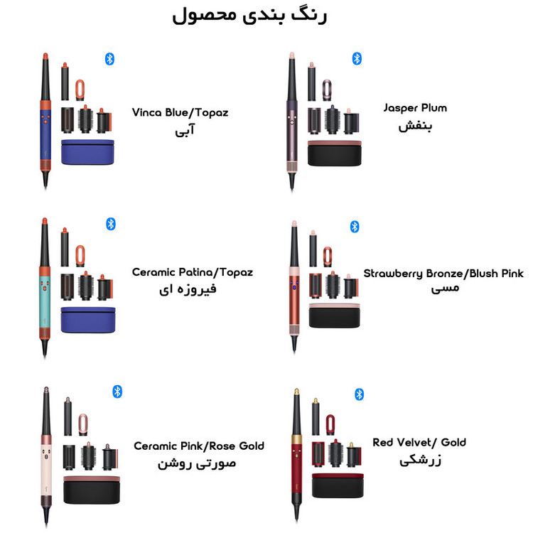 سری شانهدار , سری برسدار گرد پهن , کیف نگهدارنده , خشککن ملایم , متمرکزکننده باریک , متمرکزکننده پهن
