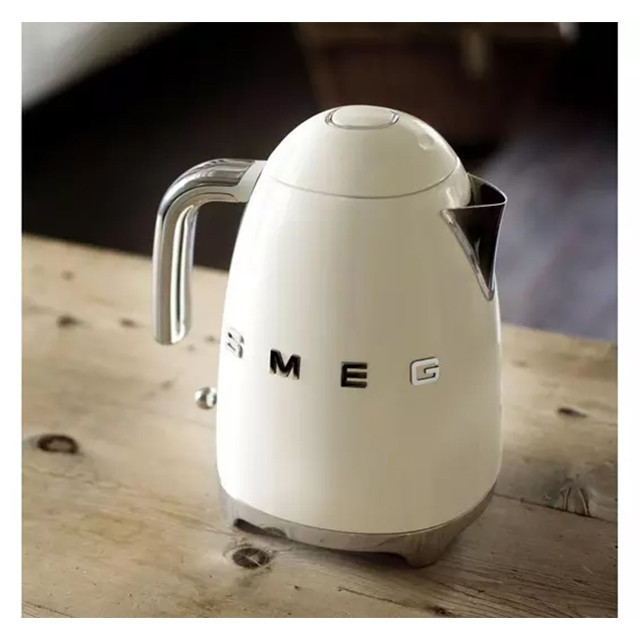 شرکت اسمگ به عنوان یکی از لوکسترین با کیفیتترین شرکتهای سازندهی لوازم خانگی کوچک و بزرگ شناخته میشود. این شرکت با طراحی منحصر به فردی که دارد امضایی کاملاً مختص به خود در ساخت محصولاتش دارد. این منحصر به فرد بودن به گونهای است که هر محصول شرکت اسمگ از دور قابل تشخیص است و میتوان به سادگی گفت که در شرکت اسمک ساخته شده است. در ادامه به معرفی کتری برقی اسمگ مدل KLF03 میپردازیم. کتری برقی اسمگ مدل KLF03 از استیل ضد زنگ طراحی و ساخته شده است که در مقابل رطوبت و ضربه بسیار مقاوم است و علاوه بر این ظاهری جذاب و مدرن به آن بخشیده است. البته اگر توجه کنیم خواهیم دید که استیل به کار رفته در این کتری برقی اسمگ به غایت با کیفیت بوده و جلادهی آن به زیبایی این محصول افزوده است. به مانند دیگر محصولات شرکت اسمگ این کتری اسمگ KLF03 نیز در رنگهای مختلف و گوناگون ارائه میشود تا تمامی سلایق بتوانند رنگ دلخواه خود را انتخاب نمایند. ظرفیت این کتری برقی برابر با 1.7 لیتر است. این یک ظرفیت استاندارد میباشد که برای یک خانوادهی متوسط به بالا طراحی گشته است. با توجه به توان بالای این کتری برقی smeg مدل KLF03 میزان آبی که در داخل آن ریخته میشود در کمترین مدت زمان به جوش میآید. توان 2400 واتی این کتری اسمگ قدرت بالایی برای به جوش آوردن آب به آن بخشیده است بیشتر دستگاههایی که با آب سروکار دارند دارای نشانگر برای نشان دادن سطح آن میباشند. ولی در کتریهای برقی شرکت اسمگ این نشان دادن به صورت بسیار شیک و منحصر به فرد است.