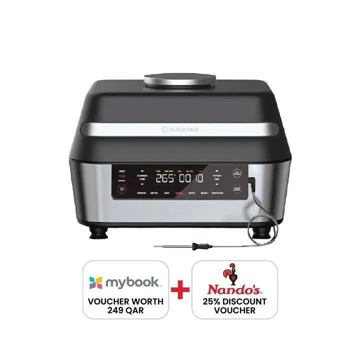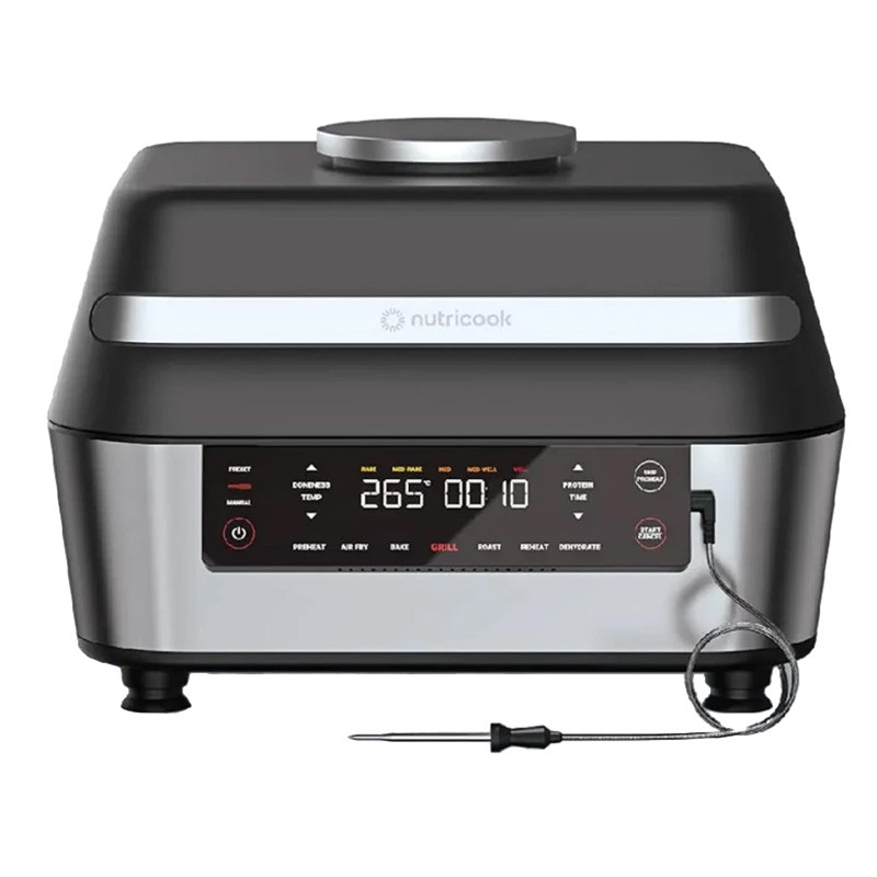 سرخ کن و گریل نوتریکوک مدل AFG960 دستگاه باکیفیت، قدرتمند و هوشمند 1760 واتی است که با 6 برنامه طبخ، پخت 5 نوع مواد غذایی پروتئینی، دماسنج هوشمند، 5 سطح درجه حرارت و ظرف پخت 8.5 لیتری، سرخ کردن و کباب کردن غذاها در فضای باز را شبیه سازی کرده و این امکان را فراهم کرده به راحتی و سریع از غذاهای کبابی سالم و خوشمزه لذت ببرید
