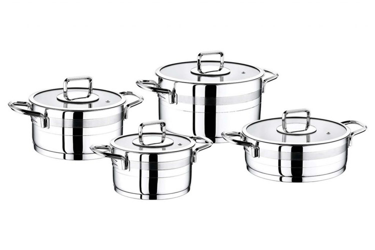 این سرویس قابلمه دارای 8 پارچه با طرح ساده ی نقره ای نیمه مات زیبا و شیک است که دستگیره و قپه های تمام نقره ای را دارا است. بدنه این سرویس قابلمه 8 پارچه اویم سارای از آلیاژ ویژهای میباشد که پخت و پز شما را راحت و کیفیت و طعم غذای شمارا بهتر می کند. بدنه آن تمام استیل و پایه های سوپر کپسولی و 3 لایه با روکش فولادی است که گرما و حرارت را به طور یکنواخت و یکسان پخش میکند که طبخ یکدستی به شما می دهد.
