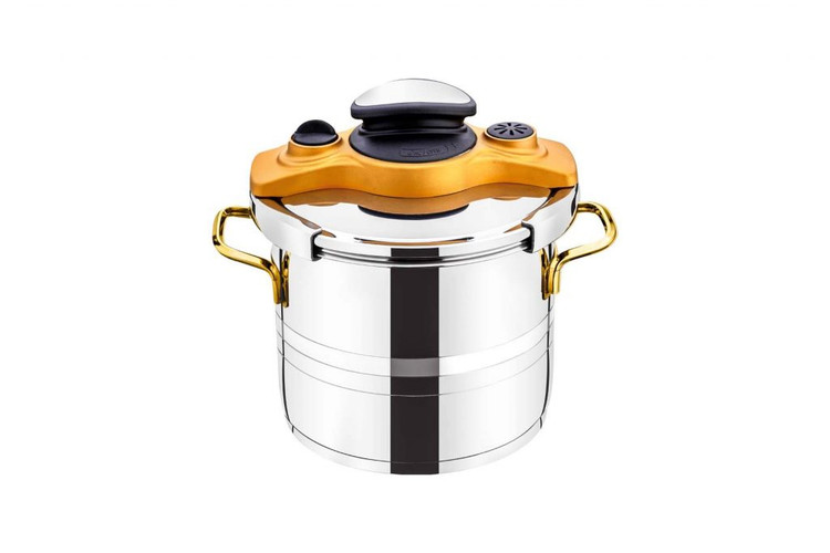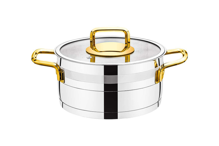 این سرویس قابلمه دارای 18 پارچه با طرح ساده ی استیل نیمه مات با ترکیب طلایی زیبا و شیک است که دستگیره و قپه های تمام طلایی را دارا است. بدنه این سرویس قابلمه 18 پارچه اویم سارای از آلیاژ ویژهای میباشد که پخت و پز شما را راحت و کیفیت و طعم غذای شمارا بهتر می کند. بدنه آن تمام استیل و پایه های سوپر کپسولی و 3 لایه با روکش فولادی است که گرما و حرارت را به طور یکنواخت و یکسان پخش میکند که طبخ یکدستی به شما می دهد.