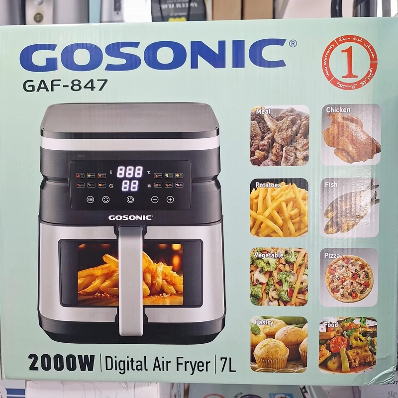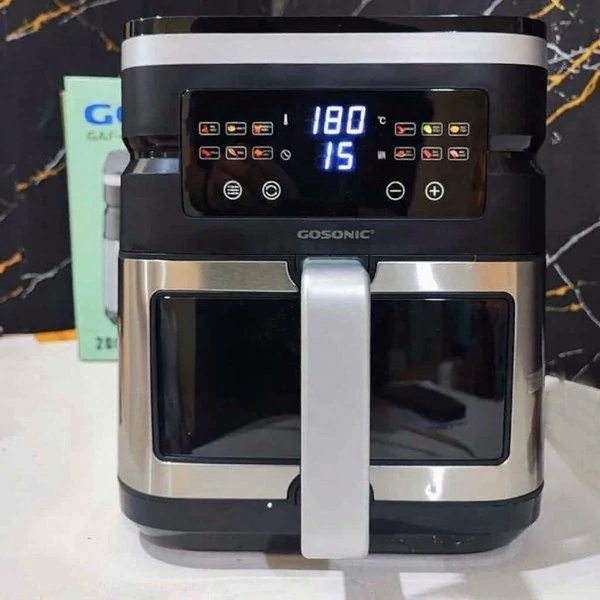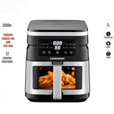 سرخ کن بدون روغن گوسونیک مدل 847 مدل جدید 837 دارای دو المنت بالا و پایین دستگاه سبد ضدخش با روکش سرامیکی توان مصرفی 2000 وات ظرفیت 7 لیتر کنترل پنل دیجیتال لمسی رنگی 12 برنامه پخت پیش فرض محفظه داخلی تمام گالوانیزه