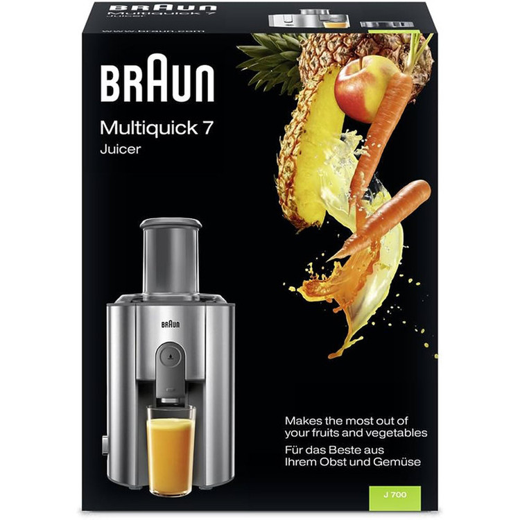 ابمیوه گیری فوق العاده و حرفه ای براون با رنگ بدنه نقره ای و قدرت 1000 وات واقعی که قابلیت میکس انواع میوه های سخت با سبزیجات را دارد.این دستگاه آبمیوه گیری با یک ظرف 2 لیتری عرضه شده و تفاله را به صورت جداگانه در محفظه پشت ذخیره میکند.تفاله های خروجی تا 95 درصد خشک بوده که میتوان گفت حتی یک قطره از اب میوه دور ریخته نخواهد شد.این ابمیوه گیری دارای سیستم ضد چکه بوده که به محض برداشتن ظرف مخصوص اب میوه شیر راه قطع کرده و مانع از چکه میشود.رنگ بدنه این دستگاه کاملا ضد لک بوده و به راحتی تمیز میشود.تیغه دستگاه استیل ضد زنگ بوده که توسط تکنولوژی کشور آلمان بالانس گردیده و هیچ لرزشی نخواهد داشت.صدای این دستگاه بسیار پایین در حد 39 دسی بل میباشد.