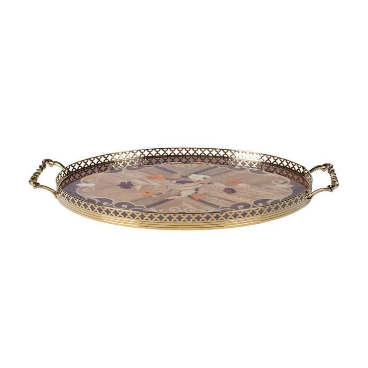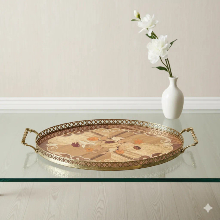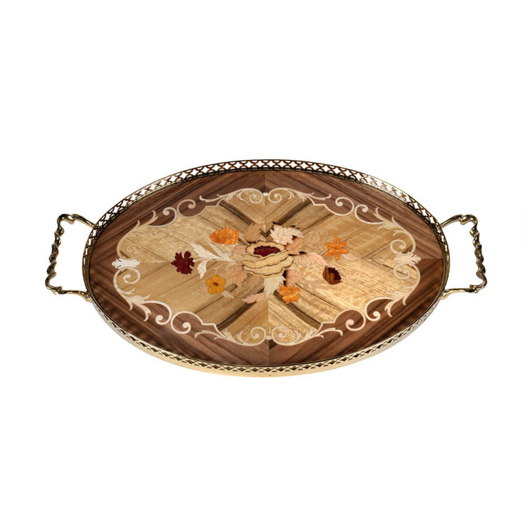 سینی چوبی معرق بیضی کد OL21