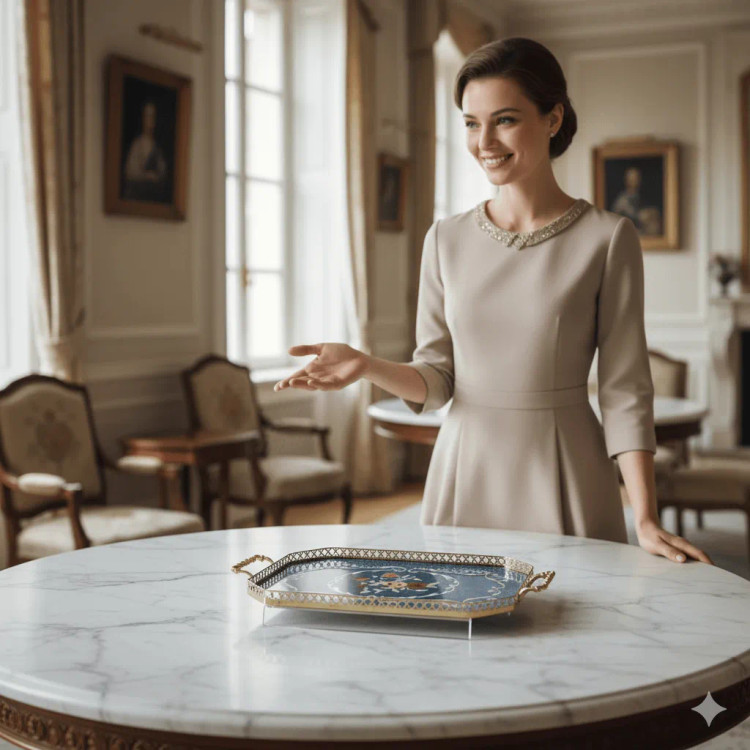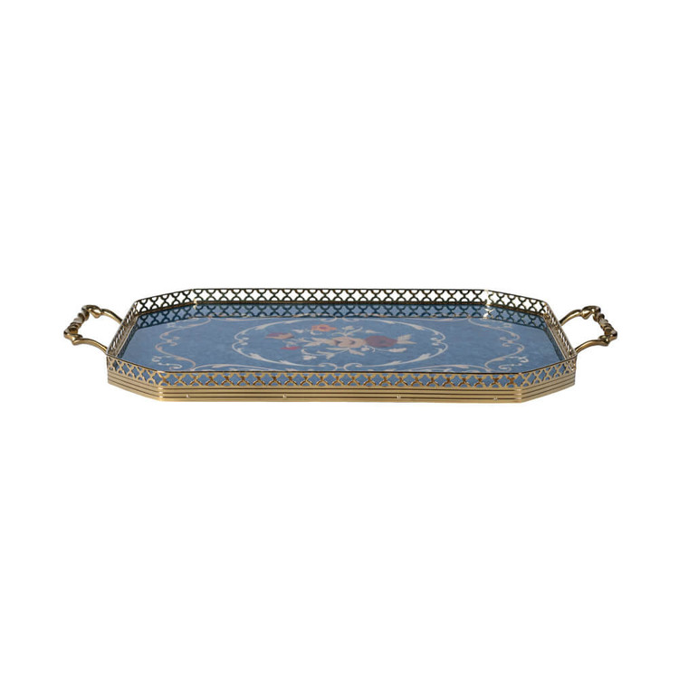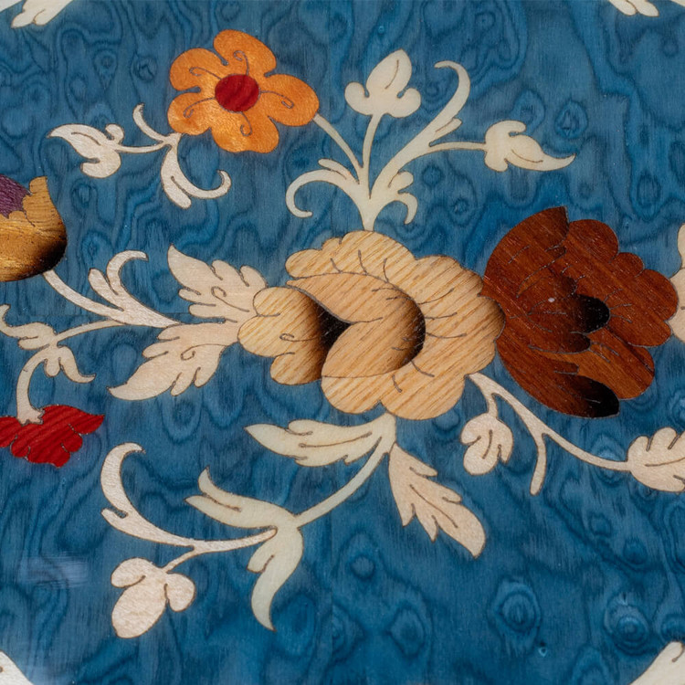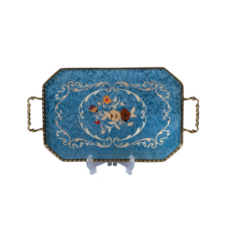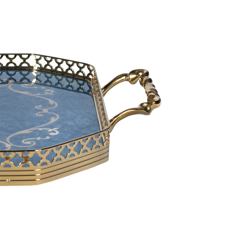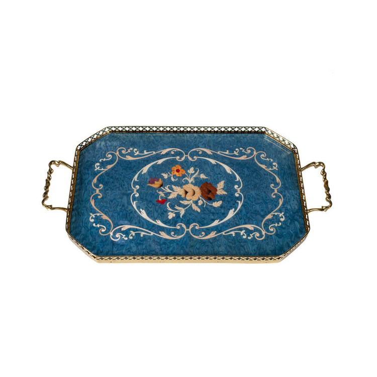 این سینی معرقکاری بینظیر، اثری هنری و کاملاً متفاوت است که با رنگآمیزی منحصربهفرد، حسی از آرامش و لطافت را منتقل میکند. پسزمینه آن از چوب باکیفیت است که با رنگ فیروزهای بسیار جذاب و هنرمندانه پوشانده شده و فضای کاملاً جدیدی را برای معرقکاری فراهم کرده است. در مرکز سینی، طرحی از گلهای رز با رنگهای صورتی ملایم و برگهای سبز، در ترکیب با زمینه آبی، کنتراستی دلنشین ایجاد کرده است. حاشیه و دستههای آلومینیومی با روکش طلایی ، زیبایی این سینی را دوچندان کرده و اصالتی کلاسیک به آن بخشیدهاند. این محصول، انتخابی خاص برای کسانی است که به دنبال سینیای با رنگ متفاوت و روحی مدرن در عین حال اصیل هستند.
