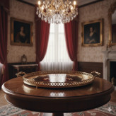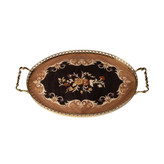 - این سینی معرقکاری، یک اثر هنری متعادل و هماهنگ است که در آن، هر جزء مکمل دیگری است. قاب بیرونی سینی از چوب گردوی تیره ساخته شده که با نقوش برجسته و ظریف، جلوهای از اصالت را به نمایش میگذارد. بخش میانی از چوبهای روشنتری مانند افرا و زیتون تشکیل شده که بافت طبیعی و مواج آنها، پسزمینهای آرامشبخش برای نقش گلهای معرقکاری شده فراهم میکند. جزئیات هنرمندانه گلها و برگها، ظرافت دست استادکار را نشان میدهد. حاشیه و دستههای آلومینیومی با پرداخت ویژه، دوام و زیبایی این اثر را تضمین میکنند.