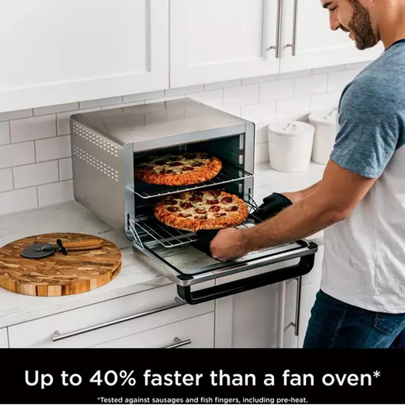 سرخ کن بدون روغن،گریل،پخت پیتزا،نان تست،شیرینی،کباب،یخ زدایی و..... همگی در یک دستگاه با محصول جدید کمپانی نینجا سبد سرخ کردنی با ظرفیت 1.8 کیلوگرم از مواد غذایی – قفسه پخت پیتزا با ظرفیت پخت یک پیتزای 12 اینچی – قفسه کباب با ظرفیت قرارگیری یک مرغ درشت DT200 Ninja Foodi XL از فناوری True Surround Convection برای نتایج پخت سریع و ترد استفاده می کند. همچنین از یک فن با سرعت بالا برای سرعت بخشیدن به زمان پخت xx، یک منبع گرمای عقب برای پخت و پز 2 سطحی و یک جریان هوای فراگیر برای توزیع یکنواخت گرما استفاده می کند. DT200 Ninja Foodi XL همه کاره است، محدوده دمایی وسیعی از 40 تا 230 درجه سانتیگراد و 10 عملکرد مختلف از جمله سرخ کردنی هوا، کباب هوا، پخت، نان تست، نان شیرینی، کباب کامل و گریل را برای برآوردن نیازهای مختلف آشپزی ارائه می دهد.