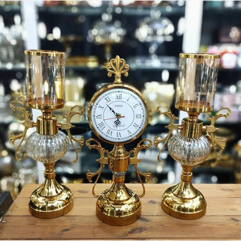 شمعدان و ساعت هر کدام را جداگانه امکان سفارش می باشد. شمعدان ها جفت می باشند رنگ سیلور و آنتیک هم دارد
