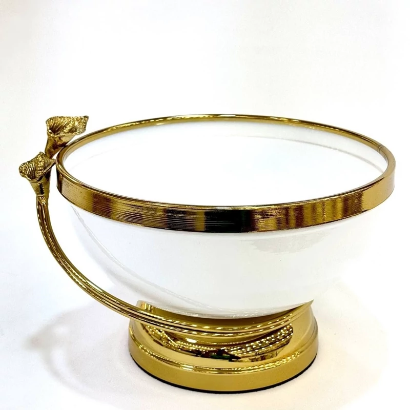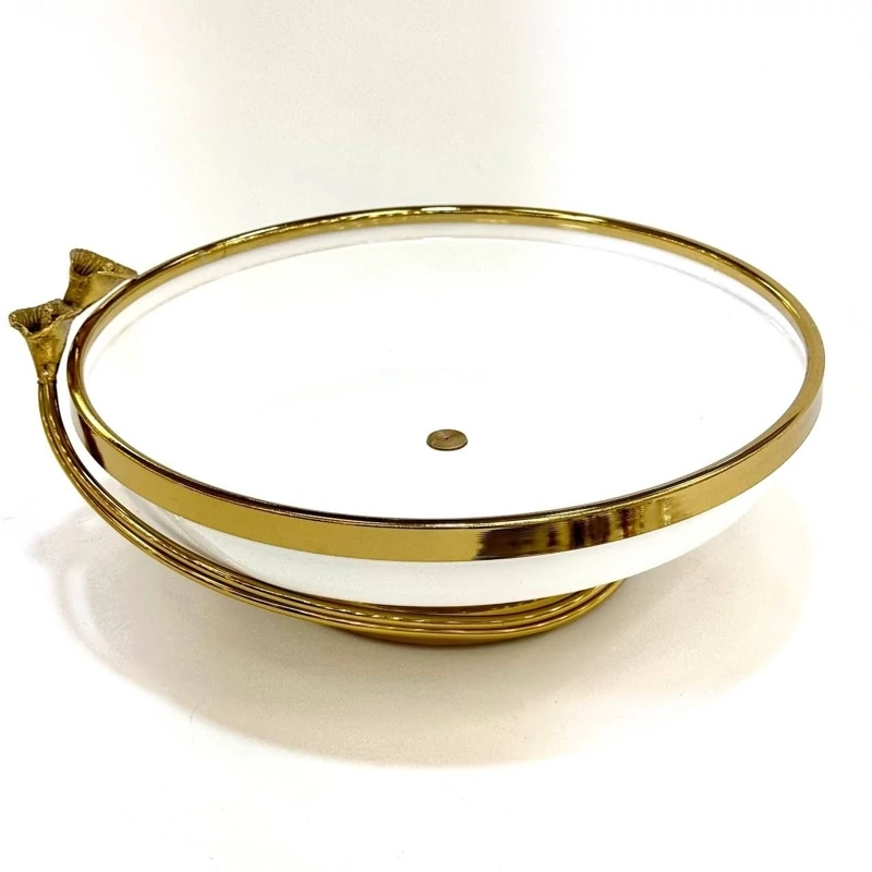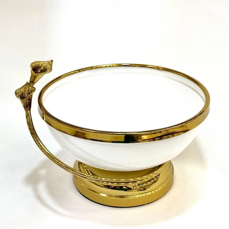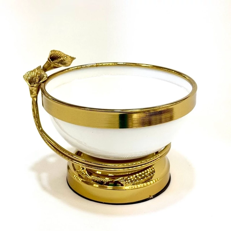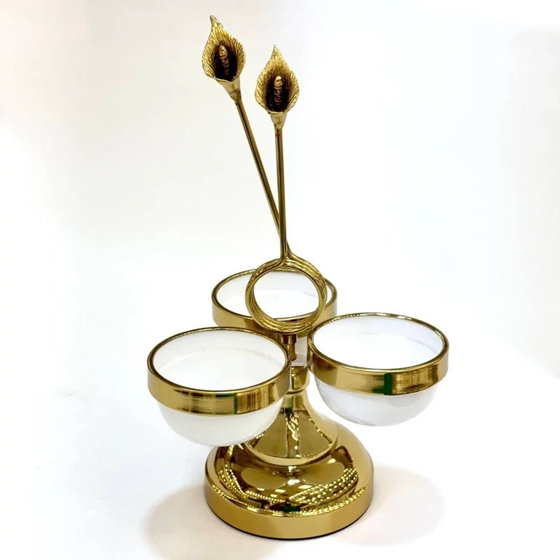 سرویس پذیرایی 5 پارچه لیلیوم گل برنجی سفید طلایی